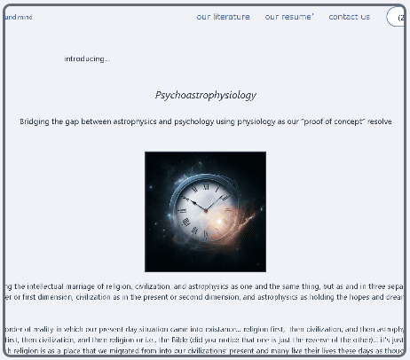 We specialize in addressing the most difficult constraints and mysterious details to mankinds’ modern day difficulties of achieving consciousness… and we do so by directly addressing them using a unified “triple strength” concentrated force of psychology, astrophysics, and physiological intelligence.